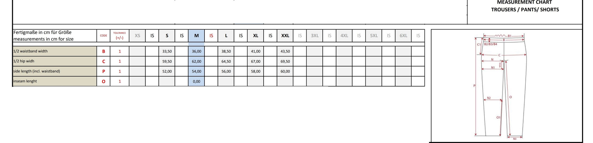 Fashionable shaped hem with short side cut, white stripes at hem and side